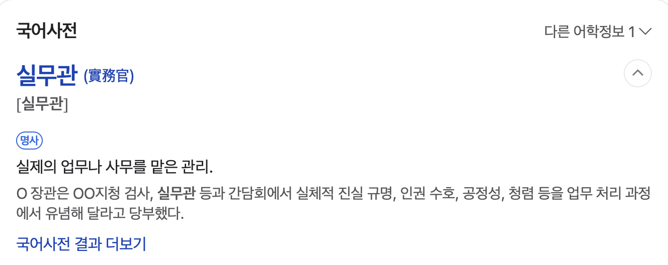 그렇다면 여기서 한국어 제목인 무도 실무관의 뜻에 대해서 국어사전을 바탕으로 알아보겠습니다.