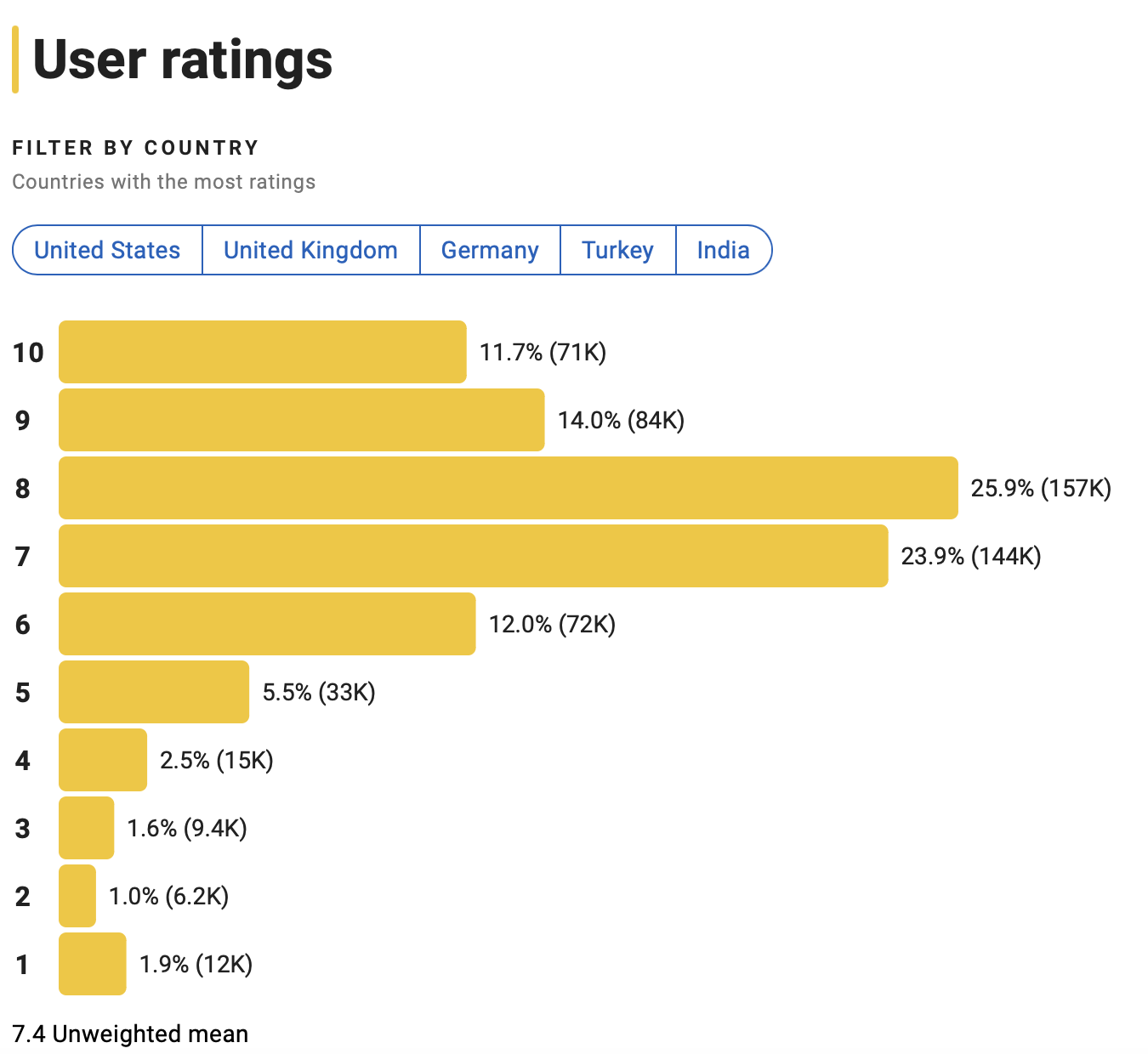 로튼토마토 관람객 평점과 비슷한 7점대의 평가를 받았습니다.